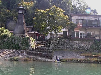 美濃橋 〜 関のホテル前を漕ぐ やまねこU号艇 hiroさん撮影 |