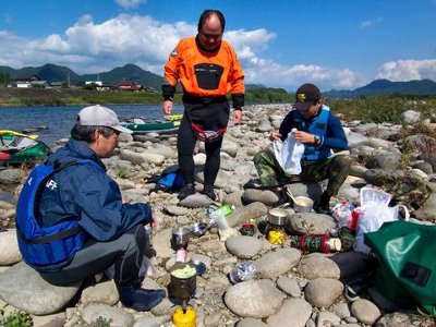みなさん、コンロとコッヘルは持ってきましたか? おにぎりは各自持ってますか?