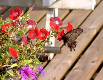 テラスの花に飛んできた ちょうちょ |