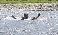 | カヌーなんかいらない ライフジャケットだけで 川流れ〜〜〜! |