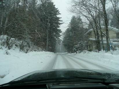 ![]() 雪道を走る |
