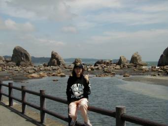 ダイビング後、ロイヤルホテルの露天風呂へ、(橋杭岩が一望、景色が最高)。