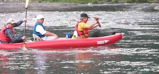 この後、この3人のパドリング、操舵は格段の成長を見せる、