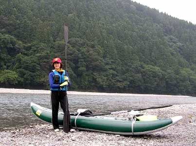 神社前で、やまねこU号を組み、素浪人Uに、カヌーの番人をさせ、