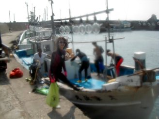 | イカ釣り漁船でボートダイビング |