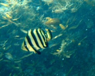 イシダイの兄弟は人なつっこく、特にチビはチョウチョウ魚のようできれい。
