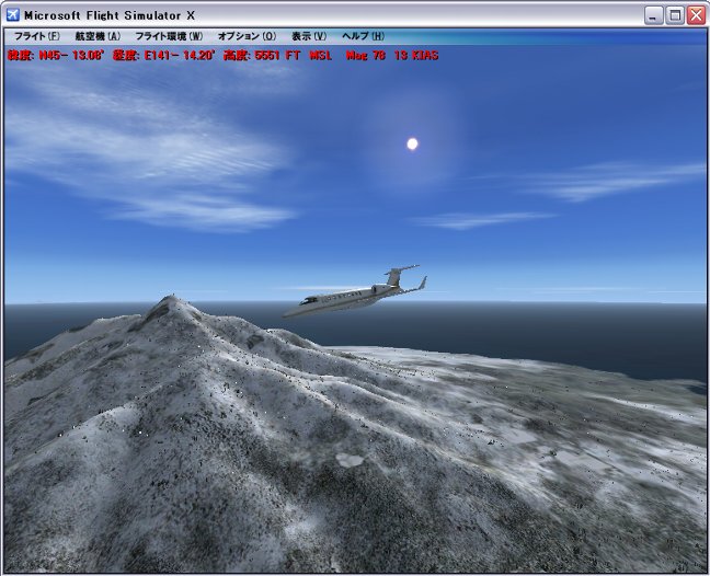 | FS2004 | FS2004 デフォルトでは、なだらかであるが、大きな山となる |