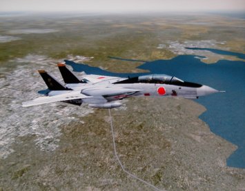 十和田湖上空の「日の丸を付けたF−14トムキャット」(CFS)