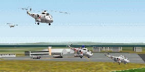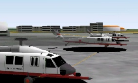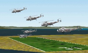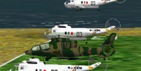 | 駐機する UH60 (ダイナ機ですが動きません) | 飛来した陸上自衛隊OH-1(自機)とダイナ機のHSS-2B OH-1はnknsさんの製作機体 |