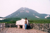 知床峠では珍しく、晴れていて羅臼岳がはっきり見えた。