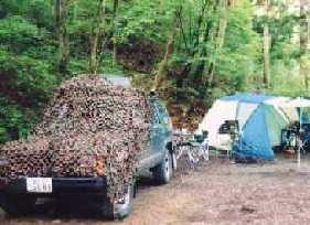 迷彩ネットを使い車をかくす。
