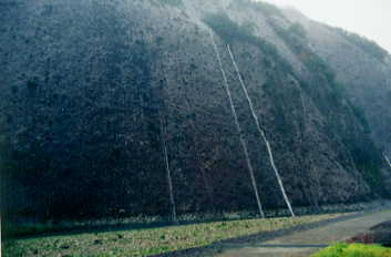 集中豪雨にあい、一枚岩には滝が何本も出来てしまった。