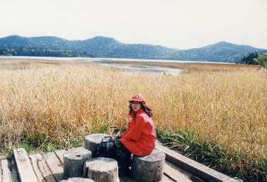 峠をくだりきると、やっと尾瀬沼の見える 茶屋に着く  ・・・一休み・・・