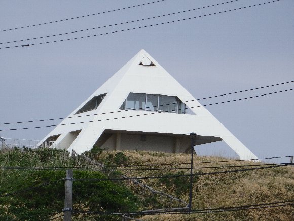 原生花園駅の少し先に、あった、ピラミッド型の展望台 |