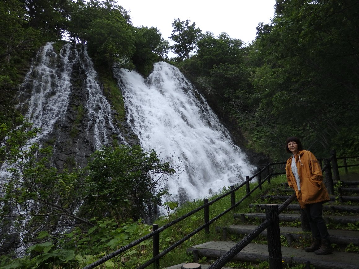オシンコシンの滝、 以前立ち寄った時の記憶よりも迫力がある 水量が多い様だ。 |