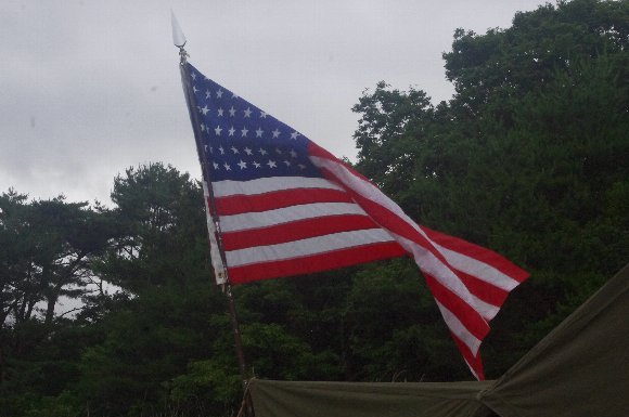 16時ごろに到着 のんびりしすぎて ベースには誰もいない・・・(笑) 暇なので、星条旗(48星)を立てる |