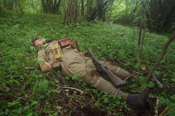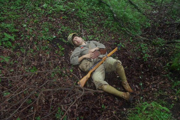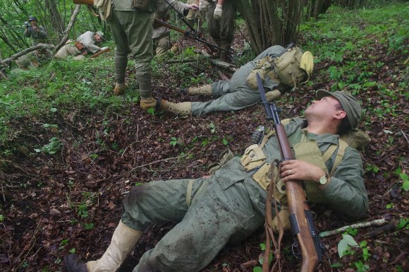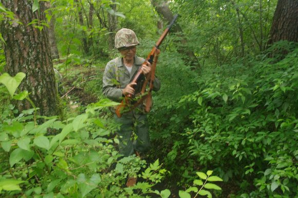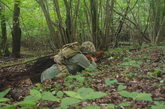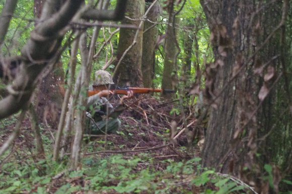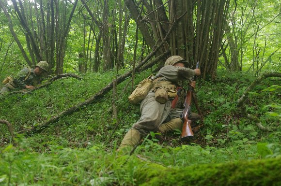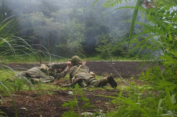 掘った塹壕に身を沈め、射撃体制 |