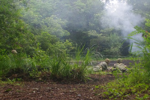 米海兵隊1分隊2組による味方援護のもと敵鉄条網の開設を実施。