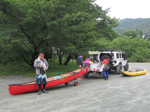 漕ぎ終わり、 カナディアンカヌーの 車両積載練習 |