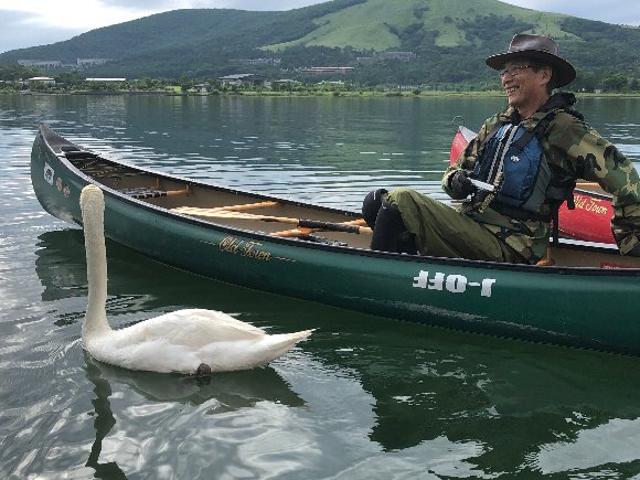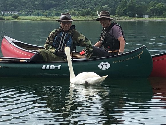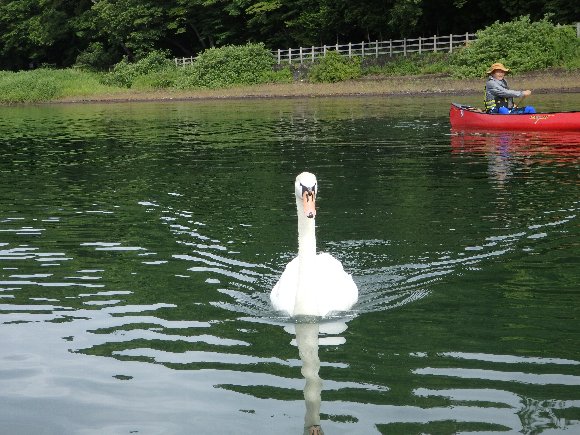 私たちが方向を変え、漕ぎだしたら白鳥も去って行った。
