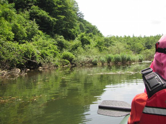 ![]() 上流方向へ向かい 木立のなかを漕ぐ |