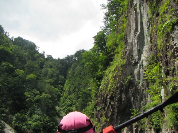 岸壁を見上げながら漕いで行く |