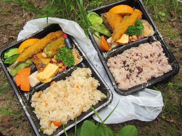 道の駅 三岳の 弁当を食べていたら |