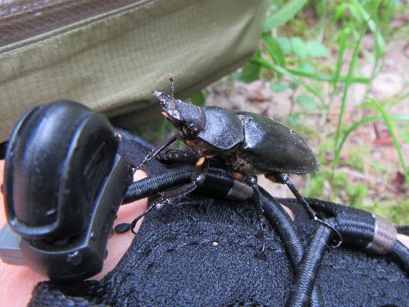 座って弁当を食べていたら、けっこう距離があったのに、さっき放したクワガタが走ってきて