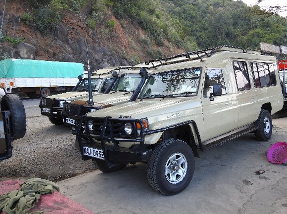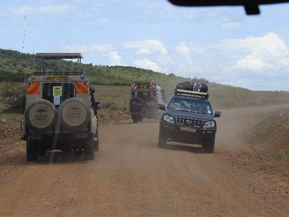 総勢12名+添乗員が 3台のサファリカーに分乗する。