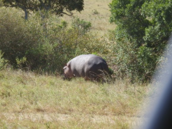 珍しく草原を歩く カバ |