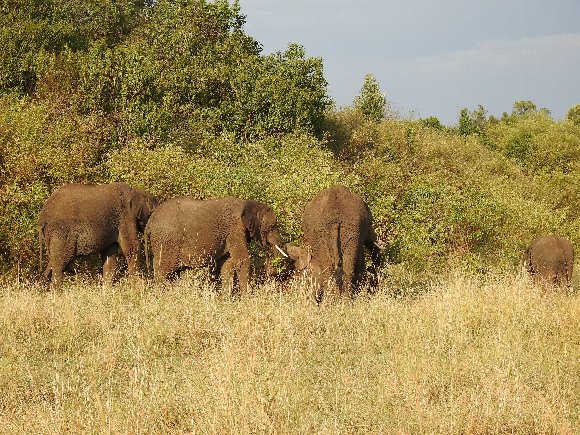 薄墨色のサバンナは ゾウの親子が歩きだし