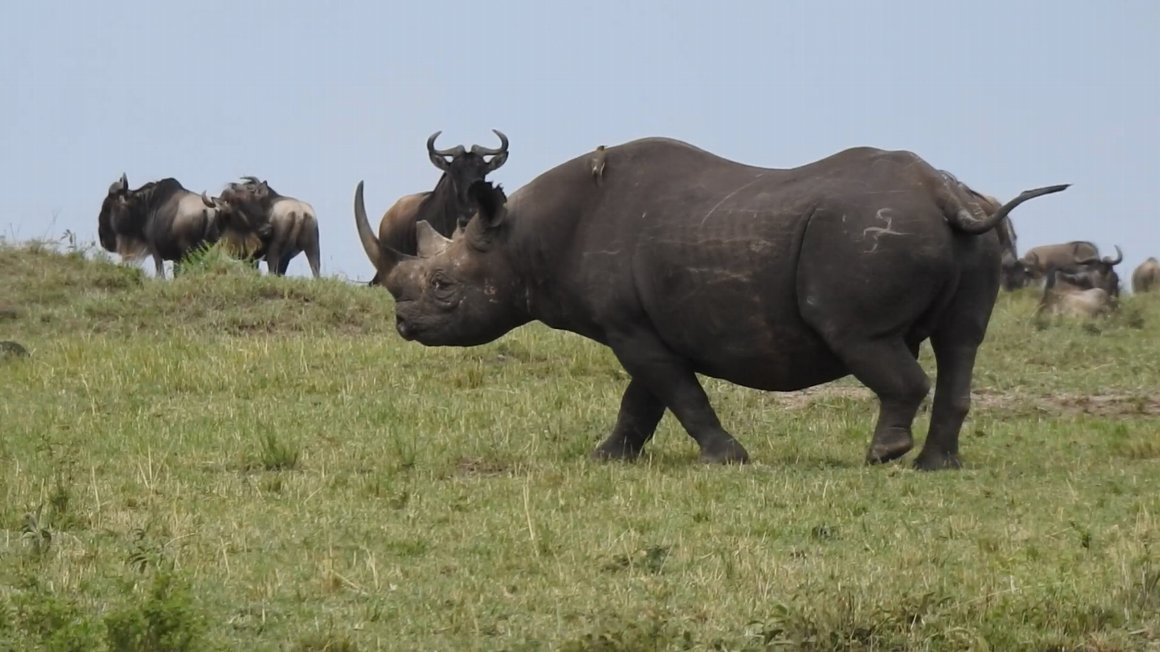 ![]() 堂々と草原を歩く クロサイ |
