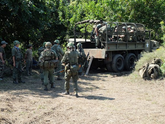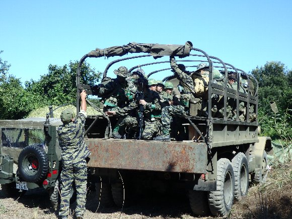 M35トラックで戦場へ輸送される、海軍シールズと海兵隊 |