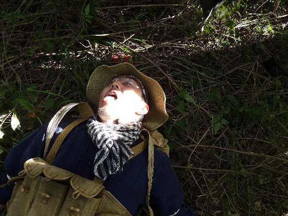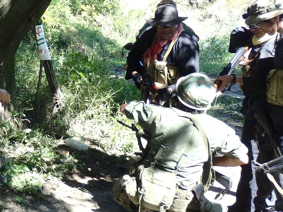 負傷した私を救出する為に、分隊長に力いっぱい引きずられ ほんとうに怪我をするかと思った??(笑)