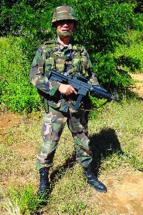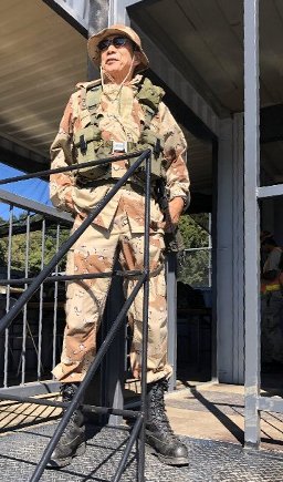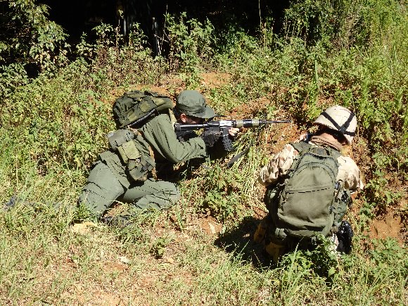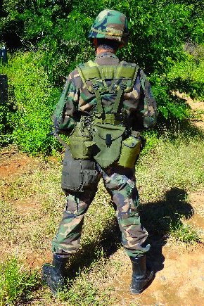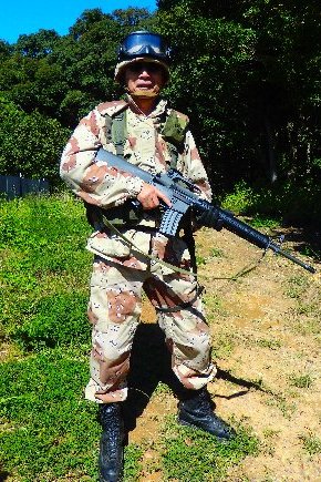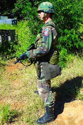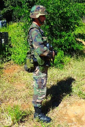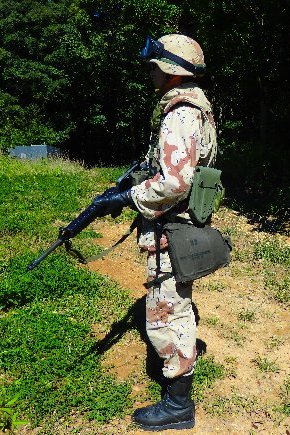 B C D @ A E ゼッケン3番、LC リーフ装備。 まずwlのご先祖様、LC リーフという間にマニア向けバッチリのユニフォームです。 78年ごろから83年までアメリカ軍に採用されていた迷彩です。 ヘルメットはM1 型、同じ柄のヘルメットカバーをつけています。銃はm16a1 、装備はLC1 ですね。 . ゼッケン4番、グレナダ装備です。 WL 装備にPASGT ヘルメットですね。銃はm16a1 です。装備はLC 1、つまりは映画、ハートブレイクリッジを見ようぜ、って装備です。 . ゼッケン5番、コソボ紛争以後の米軍WL 装備とのこと。 装備がOTV です。ヘルメットはACH 普及前ですね。あともう陸軍はM4 が主流ですね。 イラク紛争以後のUCP が配備されるまでの常備軍や州軍にも見られるマニアな装備だと思います。 . ゼッケン1番、湾岸戦争後方部隊装備です? TLBV の初期型ですね。部隊章が見えませんが、82空挺です。 なんでも、湾岸戦争の時に後方部隊ではこうした装備で支援していたそうです。銃は…… 9mmSMG . ゼッケン2番、難しい! 96年ごろの国内部隊装備とのこと。 PASGT アーマー&ヘルメットにTLBV 初期型をきています。銃はm16a2 ですね。 あれだ、95年から00年までのアメリカ映画で画面にちらっと見える米軍装備ですよ。難しい! . ゼッケン6番、 パナマ侵攻装備です。 完全なPASGT アーマー&ヘルメットにm16a2 になっております。装備はLC1 です。 . |