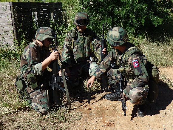 | 下記画像の人物たちの軍装として適切なものを下記語群から選び、その番号@からDを正しく並び替えろ、 並び替え順は写真左の人物を起点とする。 (出題者:メルダーズさん) @湾岸戦争後方勤務部隊 A96年ごろ、陸軍一般部隊 B70年末80年代初頭LCリーフ Cグレナダ侵攻 Dコソボ派遣 Eパナマ侵攻 |