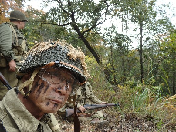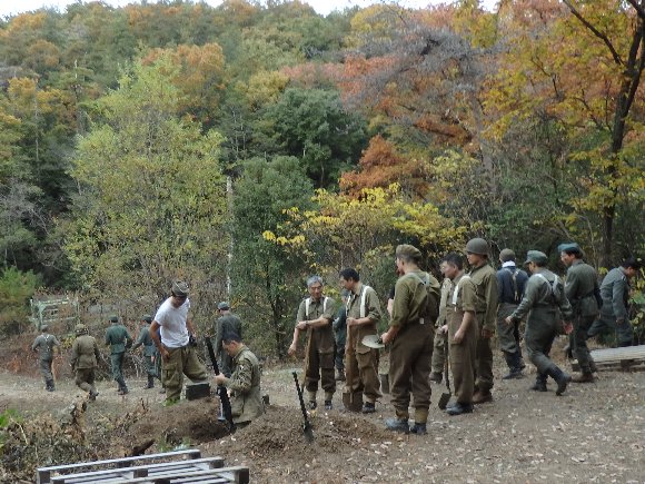 ラッパの人(ラッパ抜き) 23日、キタオギに集結した連隊は明日の攻撃開始にむけ各中隊ごと訓練を行った。 |