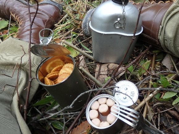 飯でも食うかぁ〜 支給され携帯していたレーションを食べる |