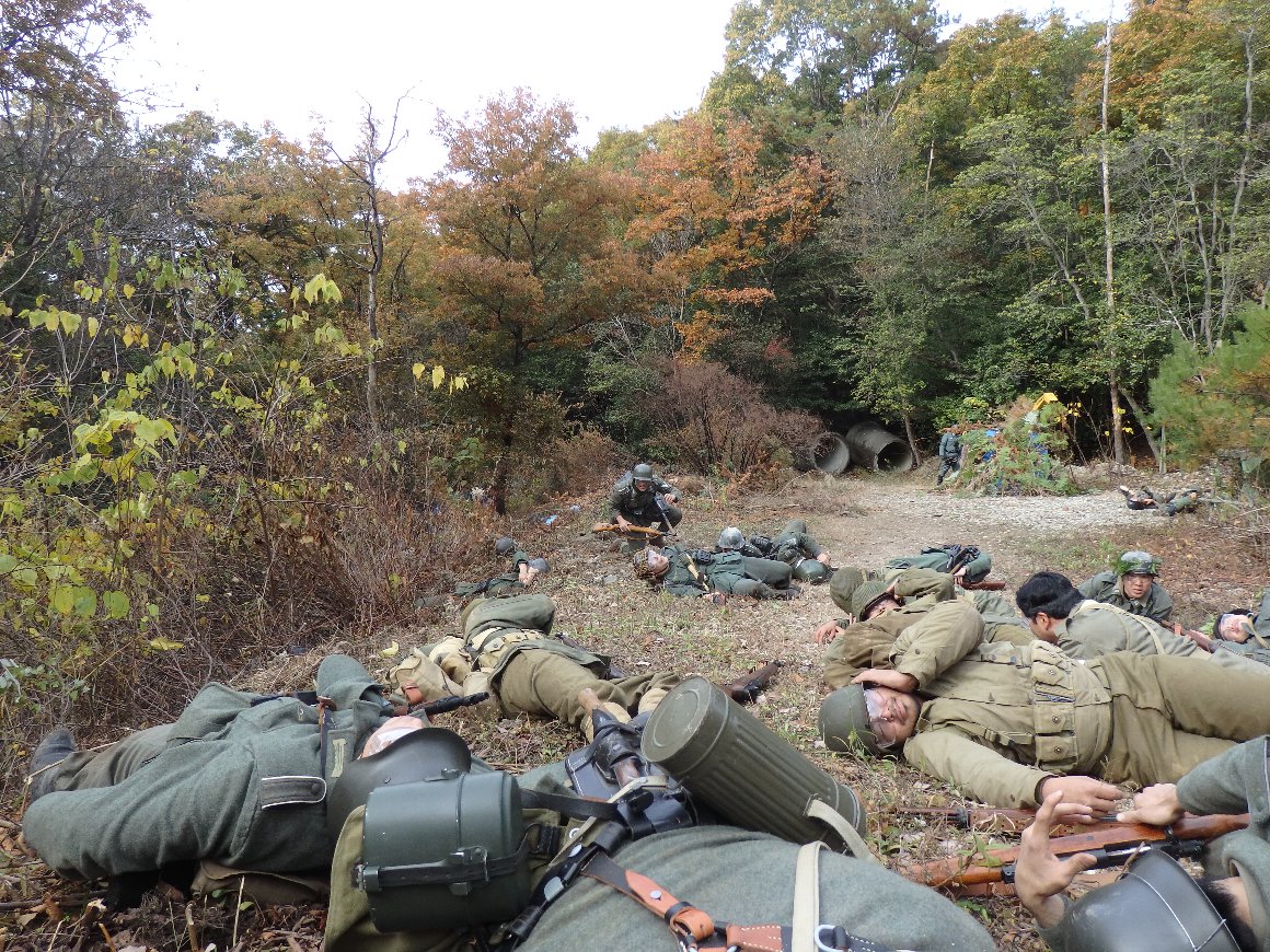 我々第二分隊も塹壕陣地より出て前進 第一分隊の後衛で展開