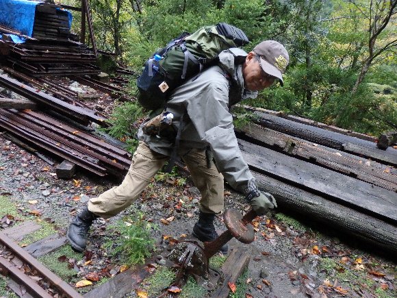 シェラフや着替えなど宿泊用具を詰めたやや重めのザックを背負いトロッコ道をひたすら歩く。