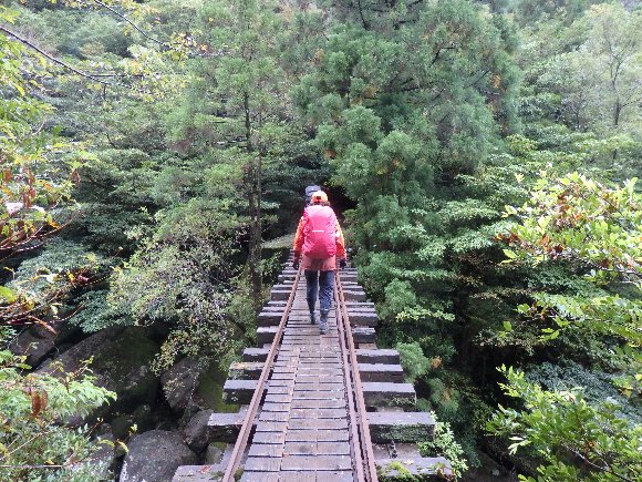 トロッコ道をひたすら歩く 手すりのない橋は スリリング |