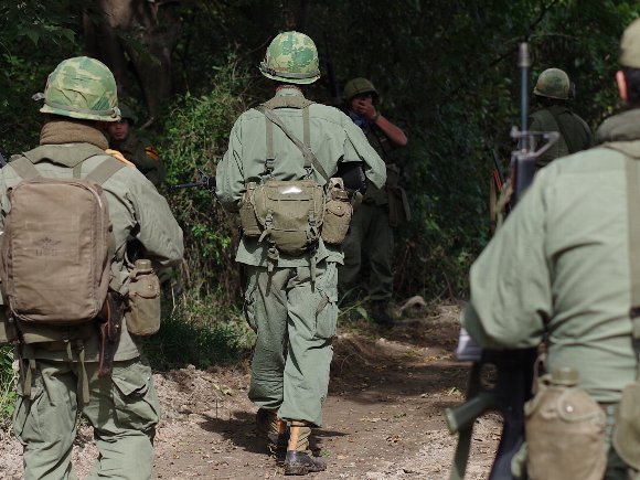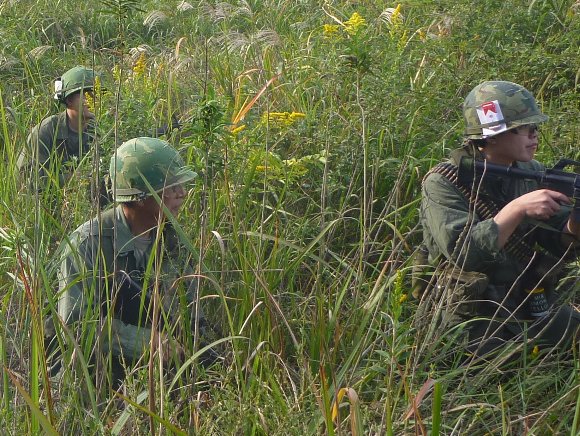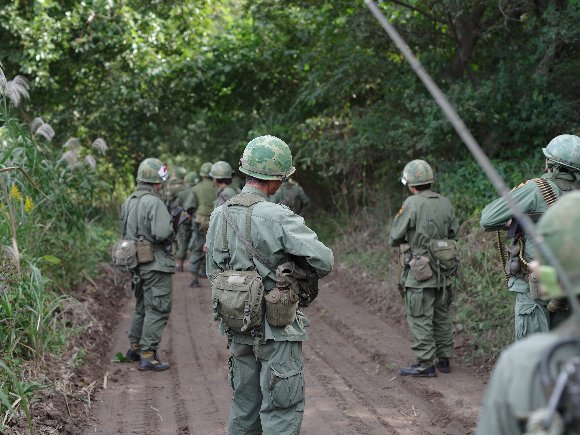 ![]() 米陸軍装備の私の前を、ベトナム農民が通りすぎる |