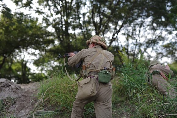 ポイント 3へ進出 敵の猛攻を受け 反撃 射撃をする私 |