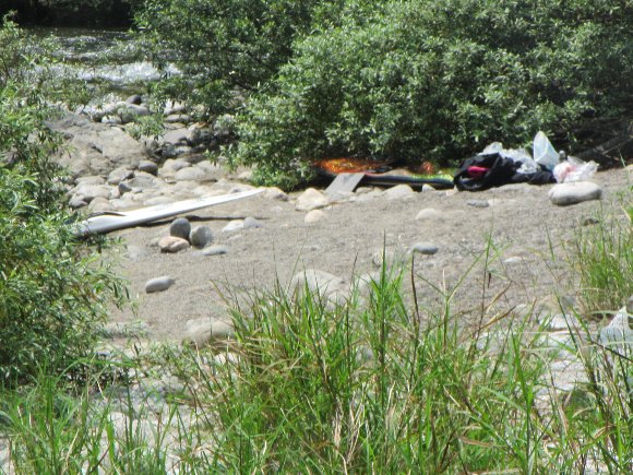 中州の下の方に、ゴミがあふれ・・・・ いや ここでスクォート艇で遊んでいた人がいた |