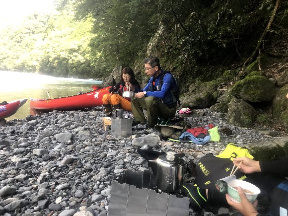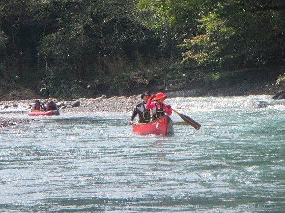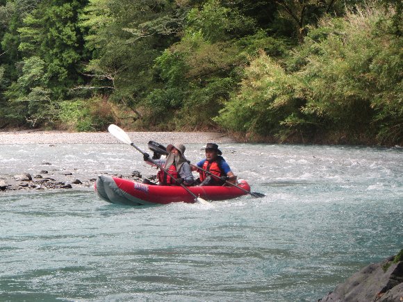 先週は雨で漕ぐのをあきらめた A山さん夫妻 今年の気田川は初めて とか |