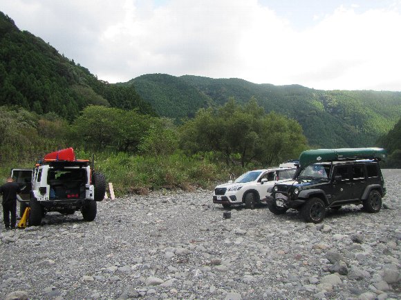 左岸河川敷の道が崩落し通行止めなとなっていたので、バックし 中程へと回送用車両をデポ