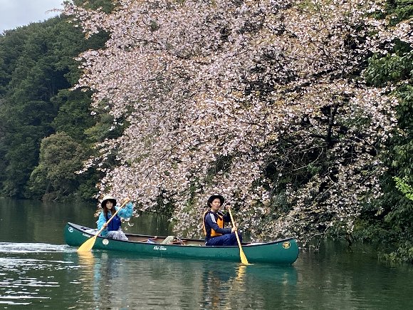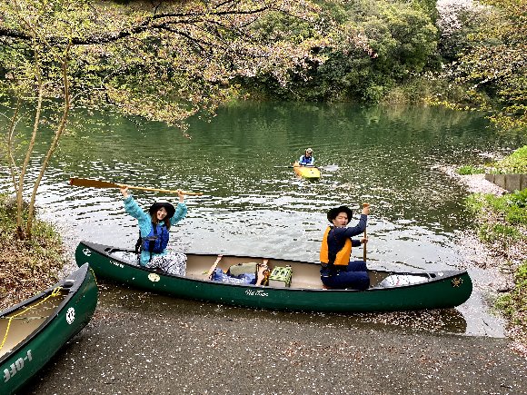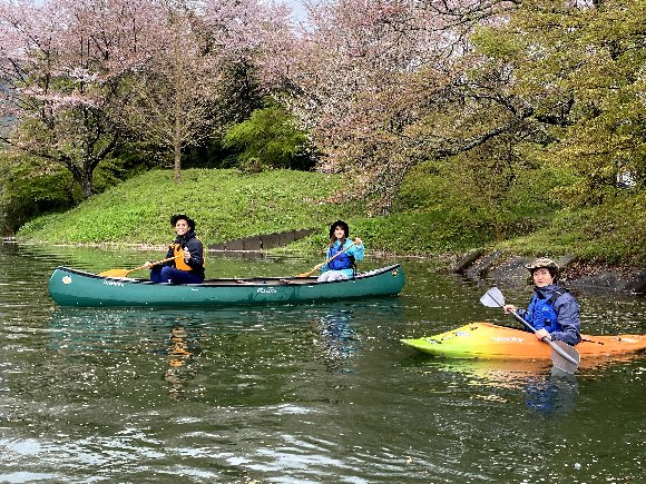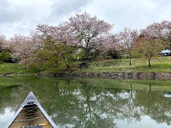 ![]() 葉桜の下、 花筏の湖を 漕ぎ出す |