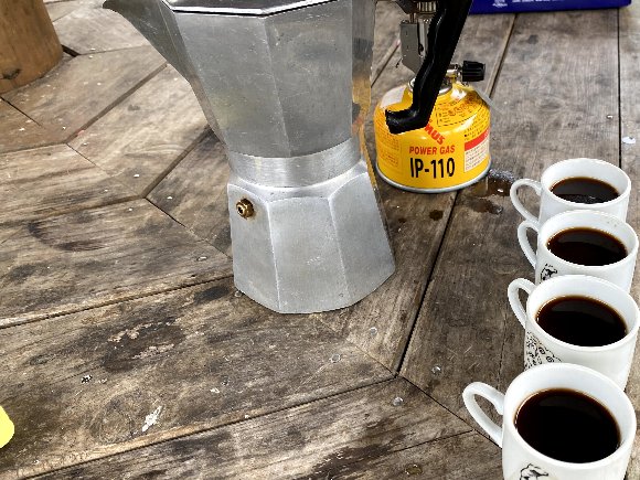 漕艇後、 公園の東屋で のんびり、 コーヒータイム