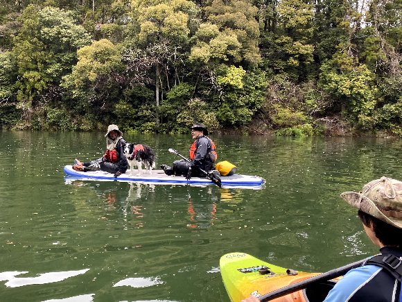 サップを漕ぎに来た という 漕ぎ仲間の Aさん夫妻と お犬様であった。
