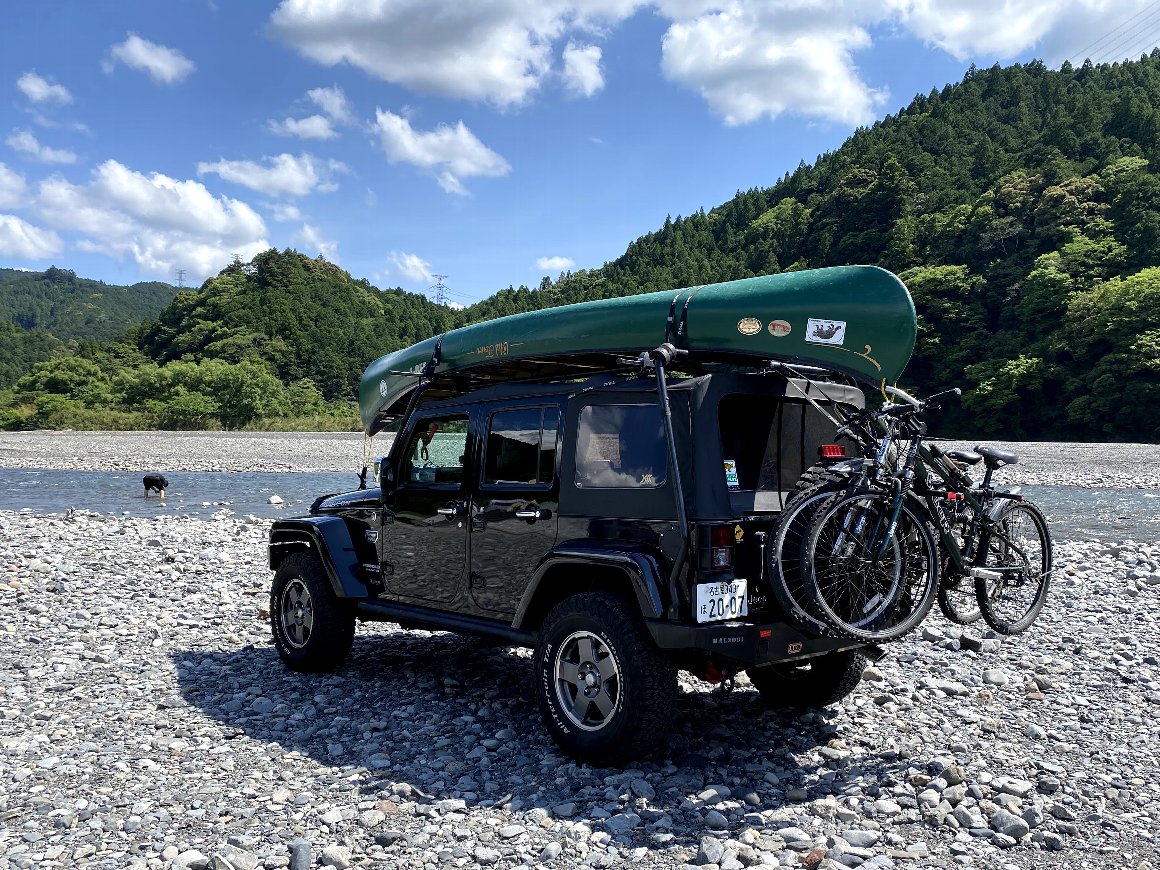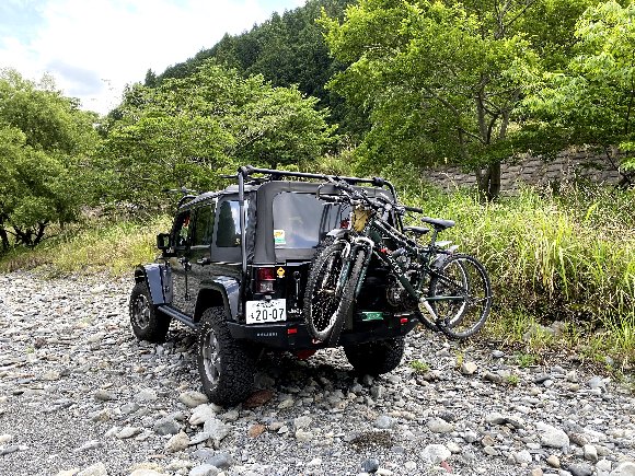 My Jeep 略して ルビクン 気田川に行くのは、初めて サイクルキャリアーを装着も初めて